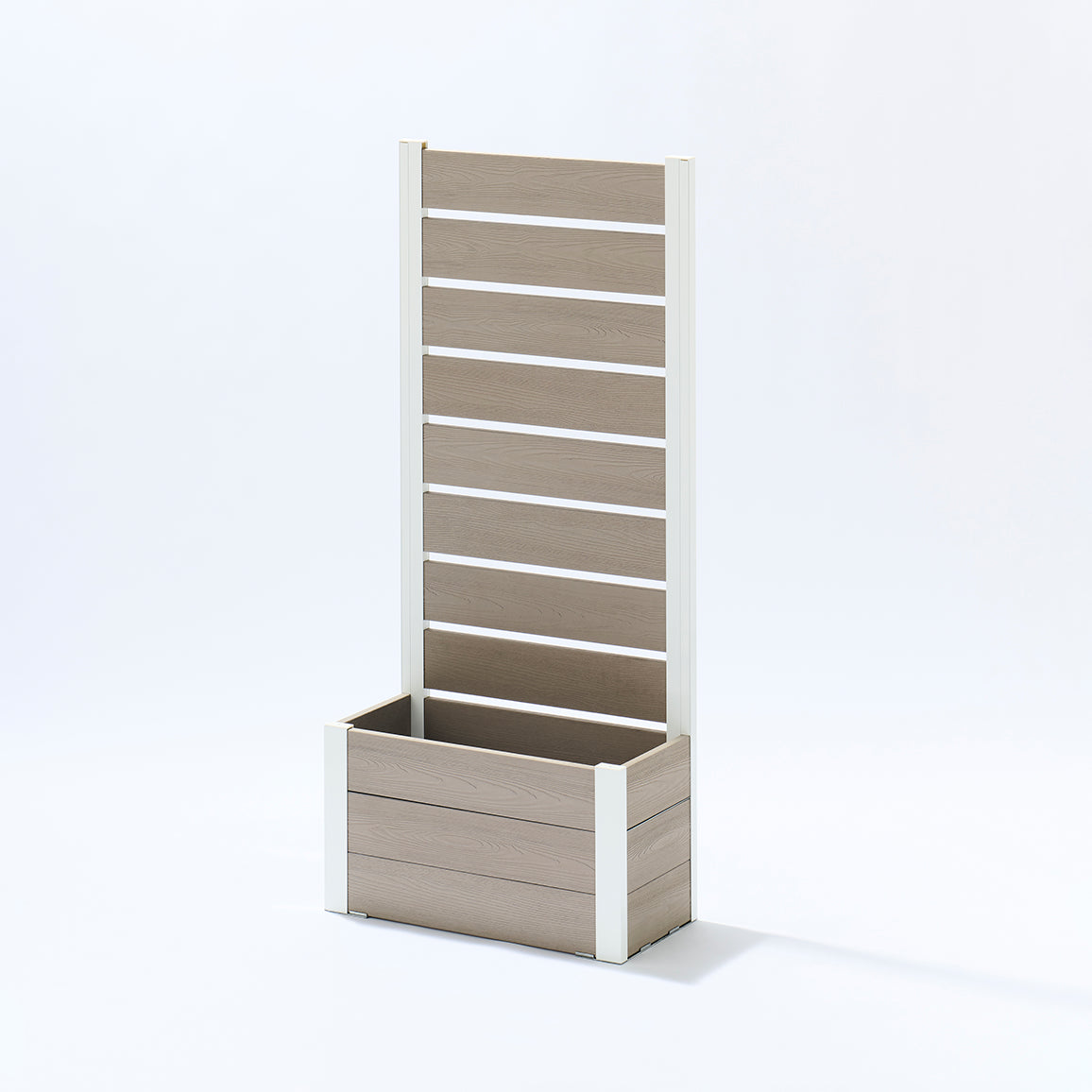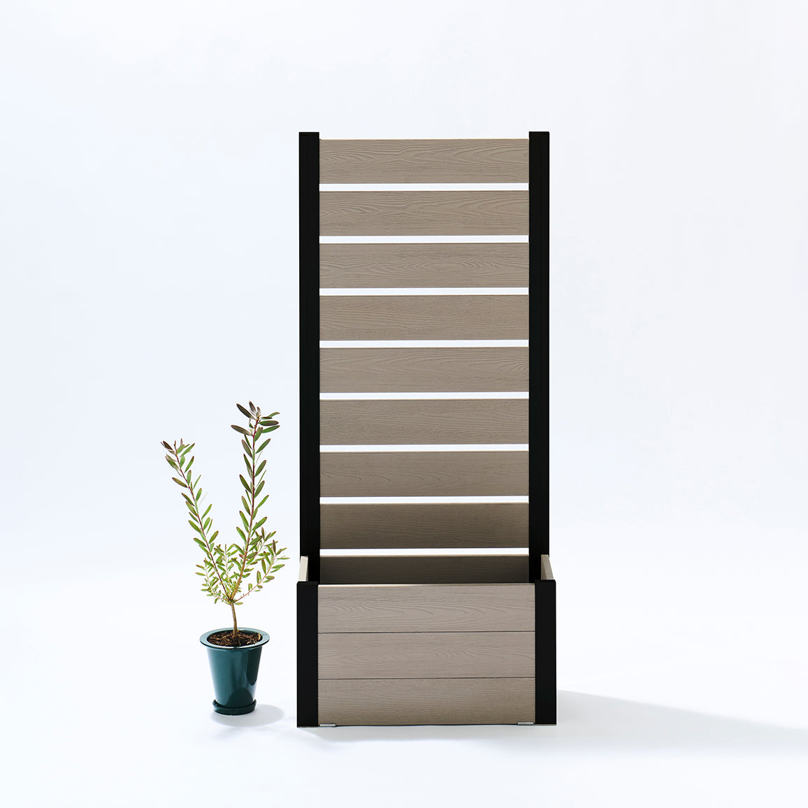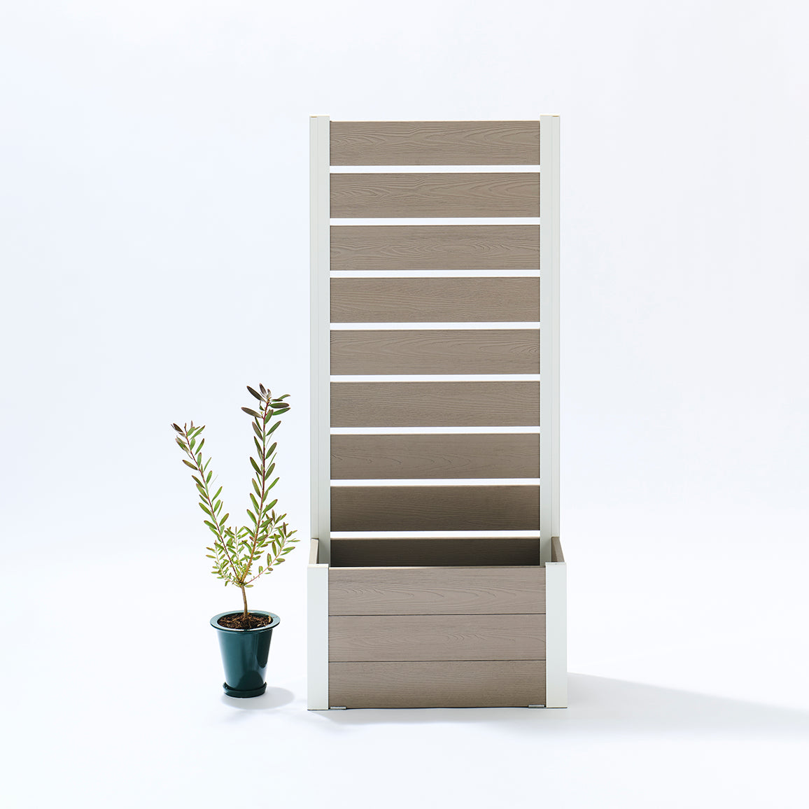 そこで、天然木のようなナチュラルで美しい外観と、耐久性・重厚感を兼ね備え、コストパフォーマンスにも優れた商品を新たに開発しました。あなたの暮らしに、緑とプライバシーのある空間をお届けします。