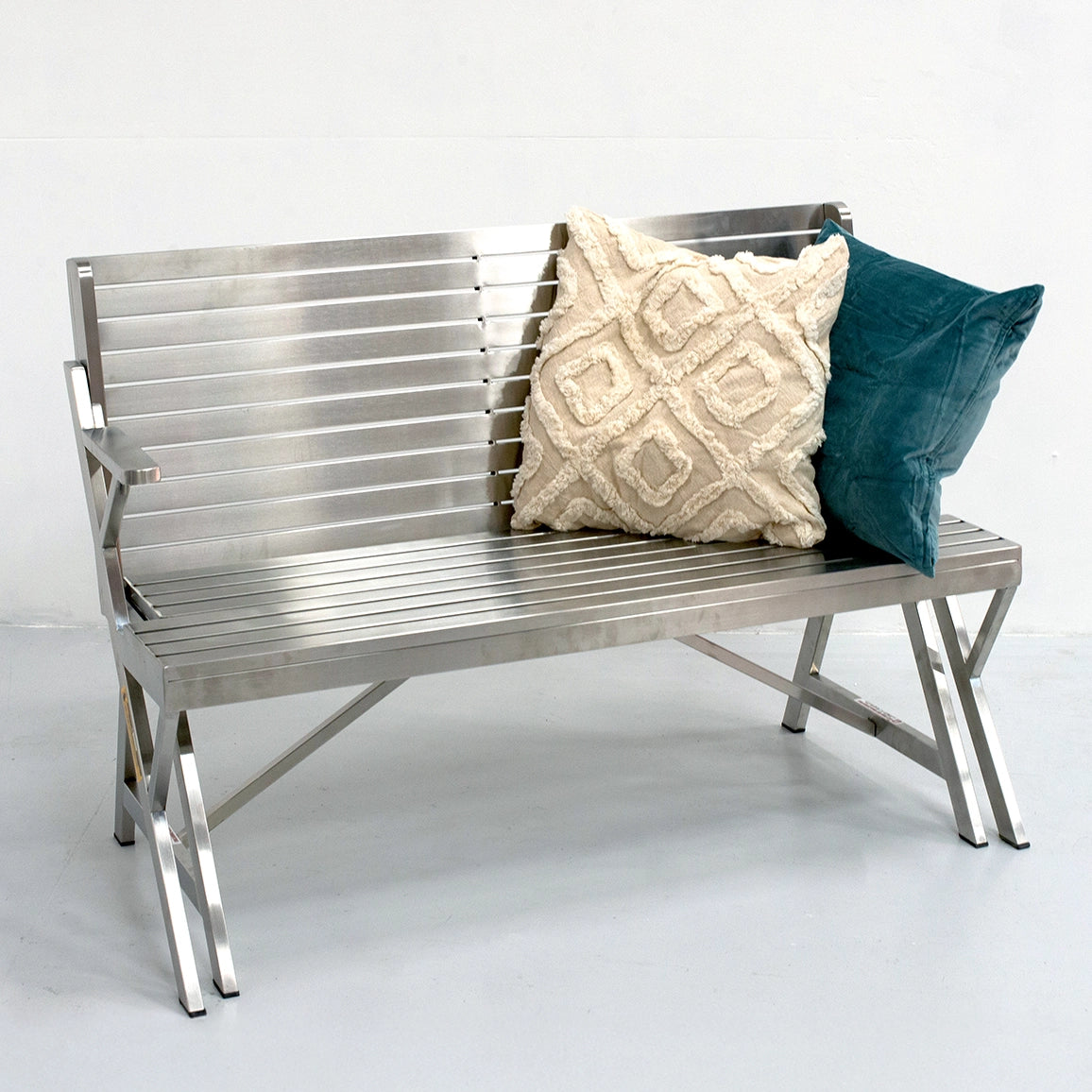 無機質で洗練された印象ですが、ラグやクッションでシーンに合わせたコーディネートも楽しめます。